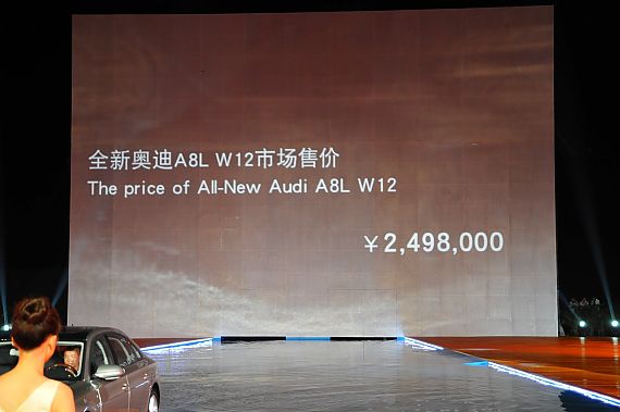 2011年8月18日,一汽-大众奥迪销售事业部在青岛宣布全新奥迪A8L W12顶级旗舰车型正式上市,市场售价249.8万元。作为奥迪最新顶级旗舰车型,全新奥迪A8L W12对豪华做出了全新定义,豪华是设计的气宇不凡,是空间上的无限延展,是时间上的从容掌控。全新奥迪A8L W12以引领潮流的设计理念彰显尊贵气质、以多项奥迪领先科技演绎进取魅力、以顶级豪华配置彰显至尊风范,将与中国高端用户一同品味奥迪品牌百年积淀的高档车历史,享受由A8L W12带来的纯粹至尊体验和从容的王者气度。