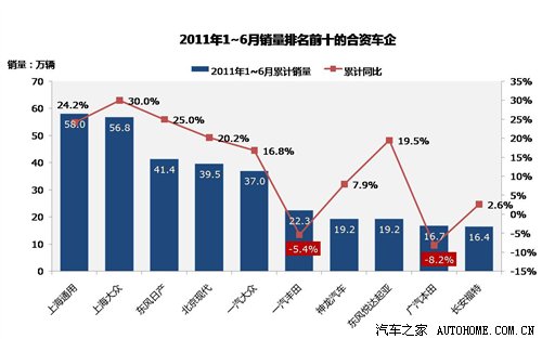 从上半年排名前十合资车企销量来看,除日系车企因受地震影响销量下滑外,其余美系、德系、韩系和法系车企均有不同程度提升,尤其是上海大众和上海通用表现抢眼。有分析认为,受地震影响日系乘用车在中国市场的份额减少了3%,其中欧系和美系拿去2.2%,韩系拿到0.8%。